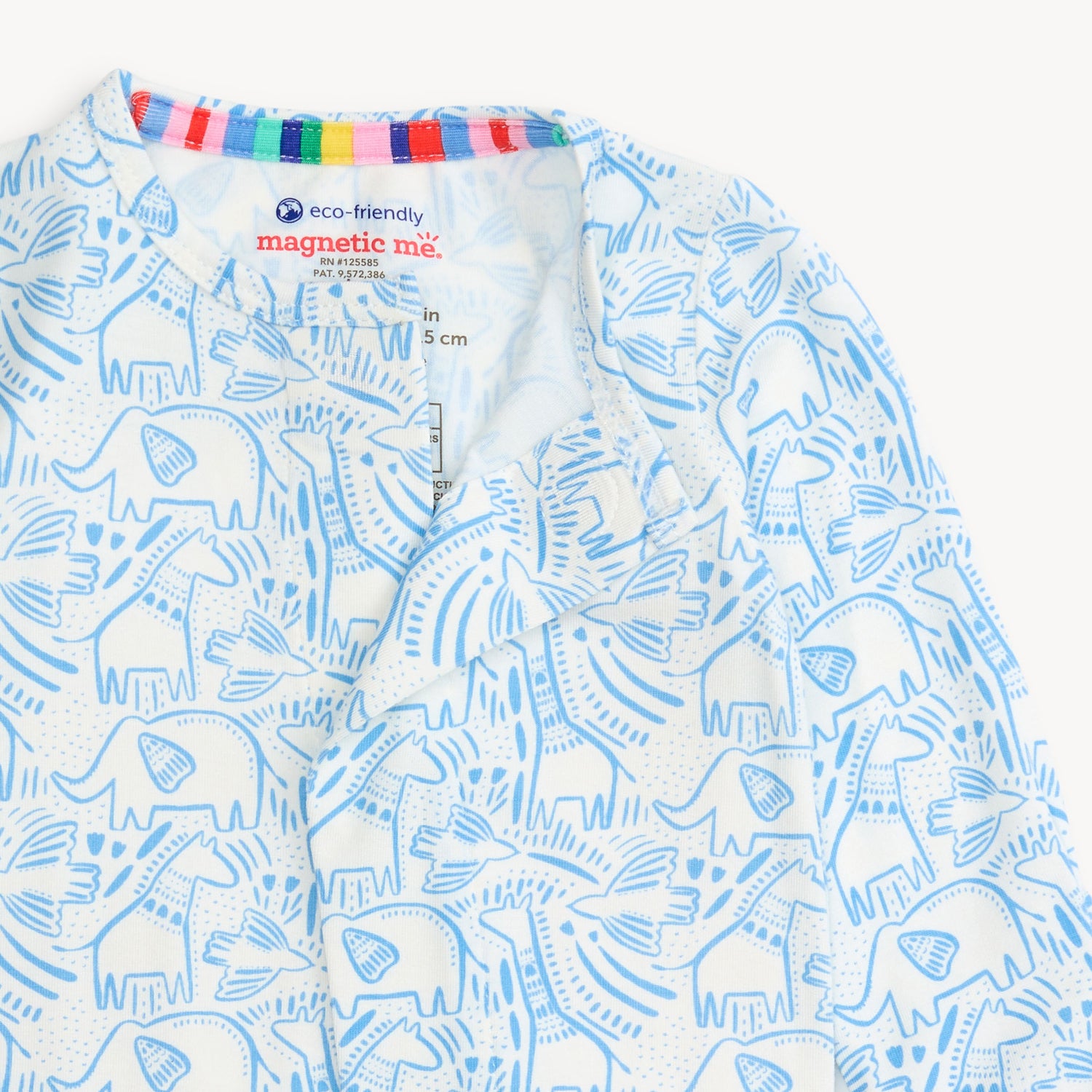 - magnetic closures: magnets line the seam from the neck to upper thigh for sizes up to 0-3m & from neck to crotch for sizes 3-6m and up.