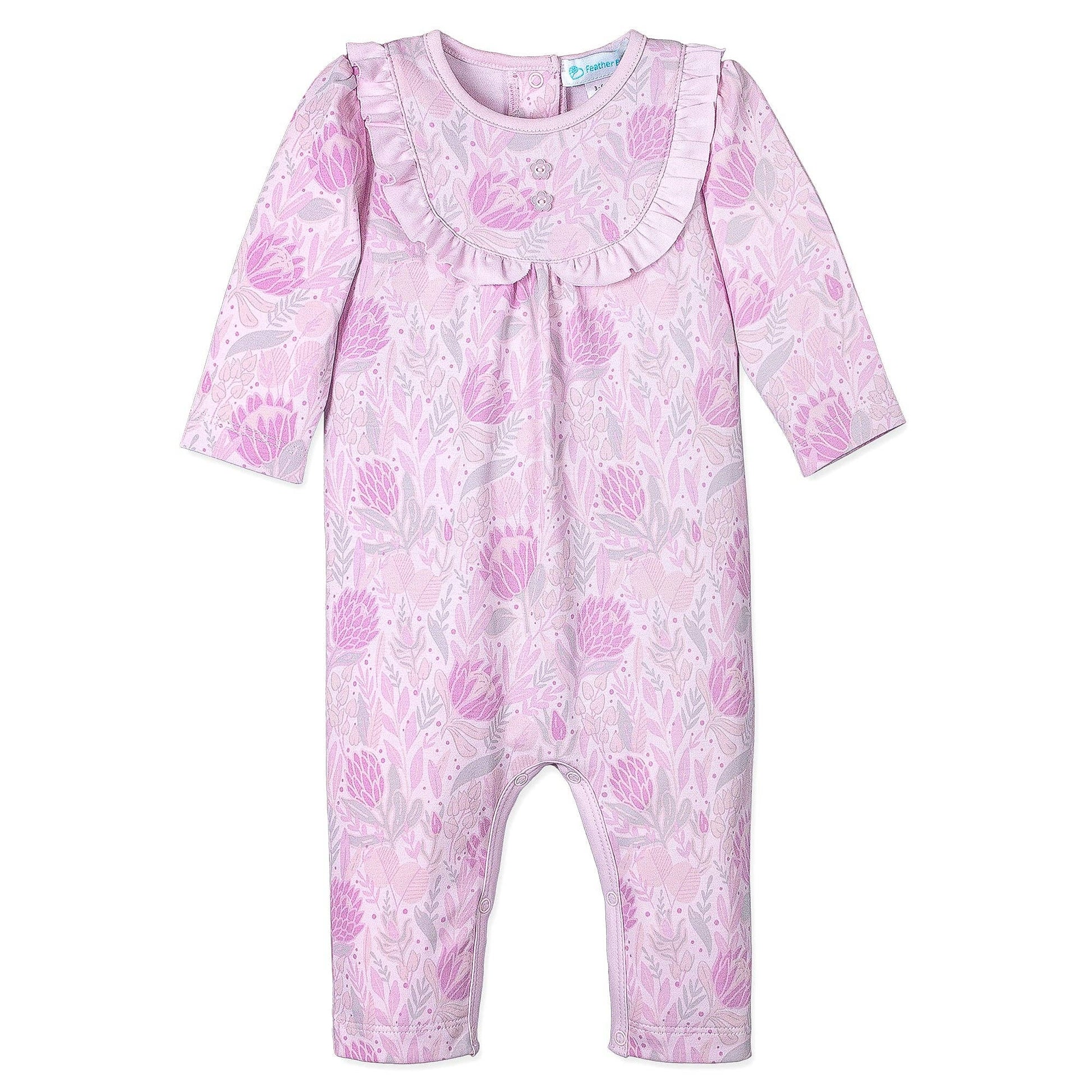 Layla on Pink Ruffle Pima Yoke Romper