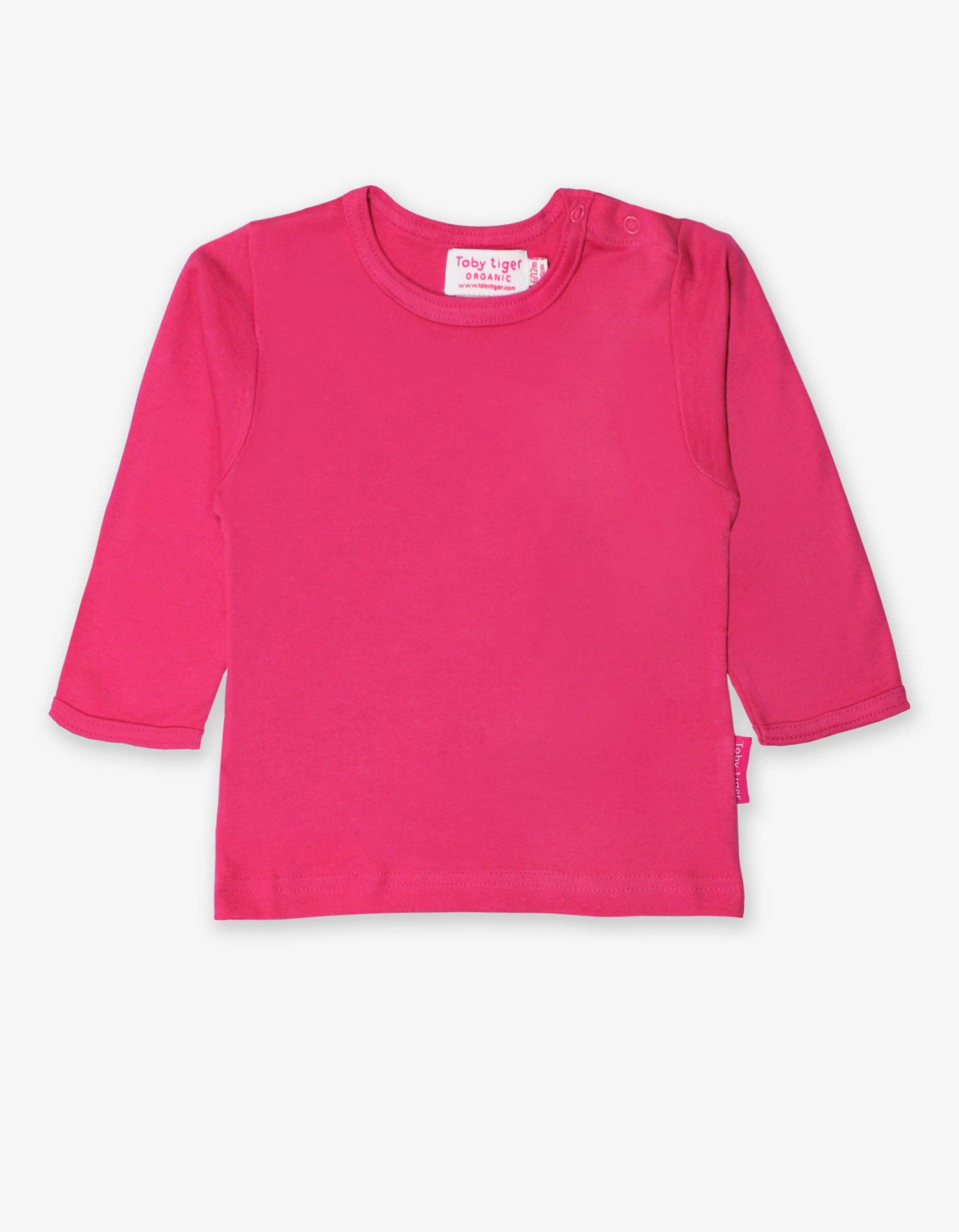 Think pink! A beautifully simple perfectly pink long sleeve t-shirt made from super soft 100% certified organic cotton. Snaps at the front.