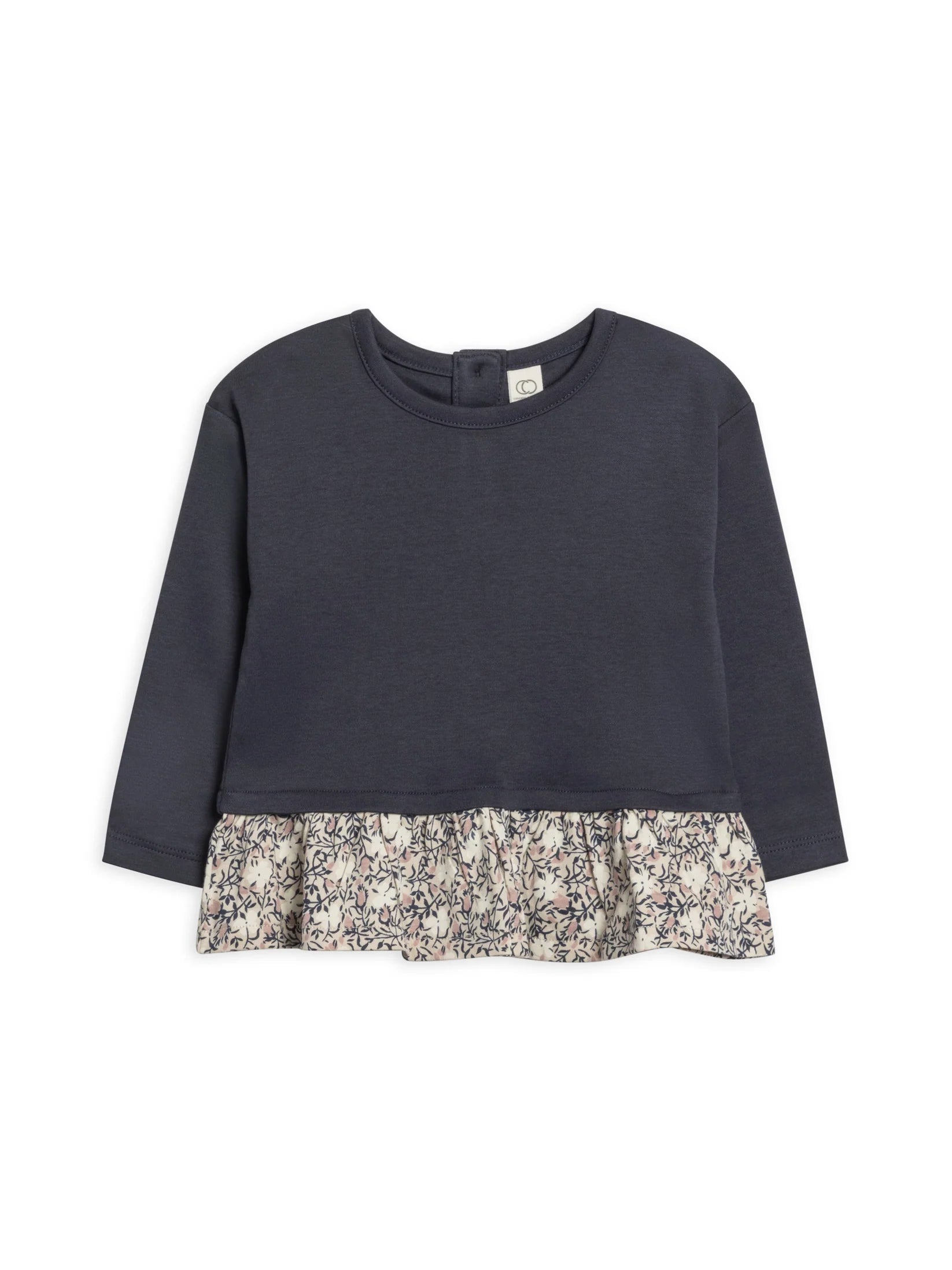Our Lily Ruffle Hem Top is the perfect addition to your little's closet. Your child is bound to look adorable with this top's back-button placket, long sleeves and contrasted ruffled hem.