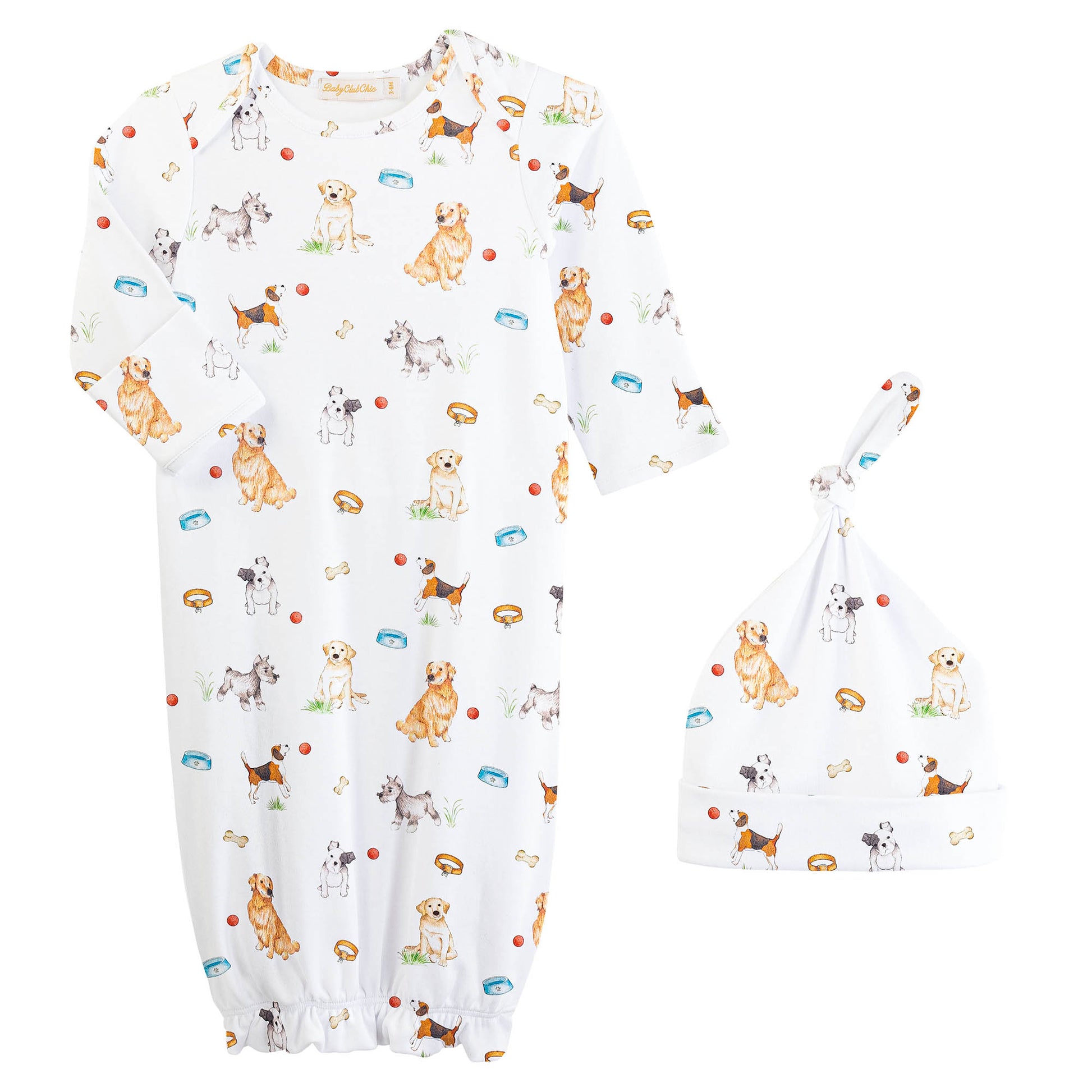 Dress your baby boy in cozy comfort with the Best Friends Pima Gown + Hat Set. Crafted from 100% soft pima cotton, this set features an adorable dog print all over, adding playful charm to every outfit. The gown includes foldover cuffs at the hands to keep little fingers warm and prevent scratching. Perfect for sensitive skin, this breathable fabric ensures your baby stays comfortable day and night. A stylish and practical choice for your little one’s wardrobe.