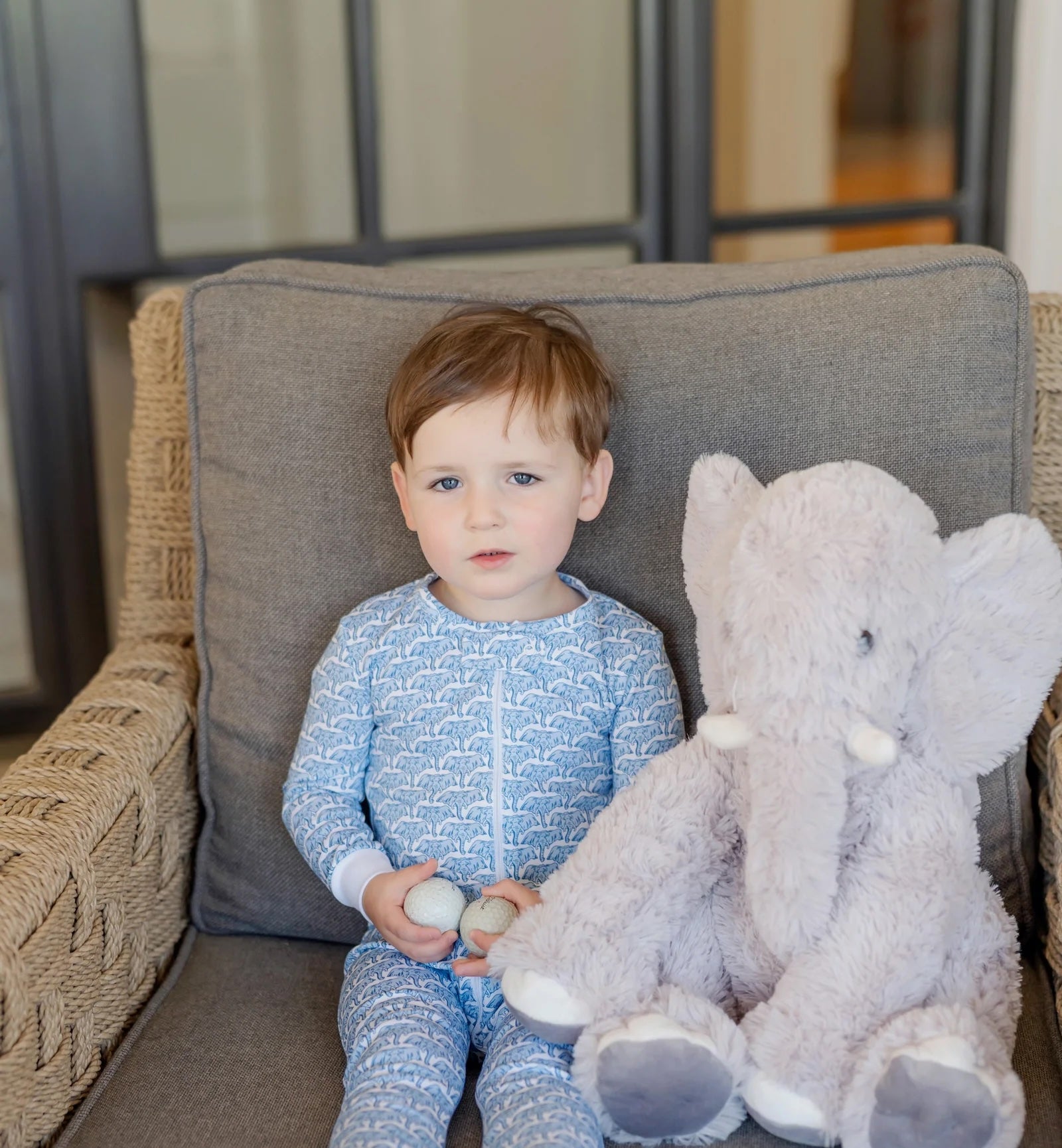 Parker Pima Zip Pajamas - African Elephants Blue