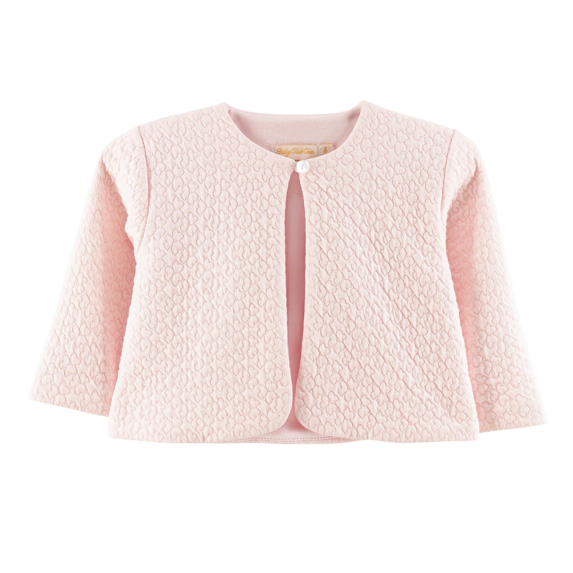 This Pink Quilted Hearts Pima Cardigan is crafted from 100% hypoallergenic pima cotton, making it perfect for sensitive baby skin. The adorable pink quilted hearts add a touch of sweetness to this comfy and extremely soft cardigan. Single button closure allows for easy dressing.