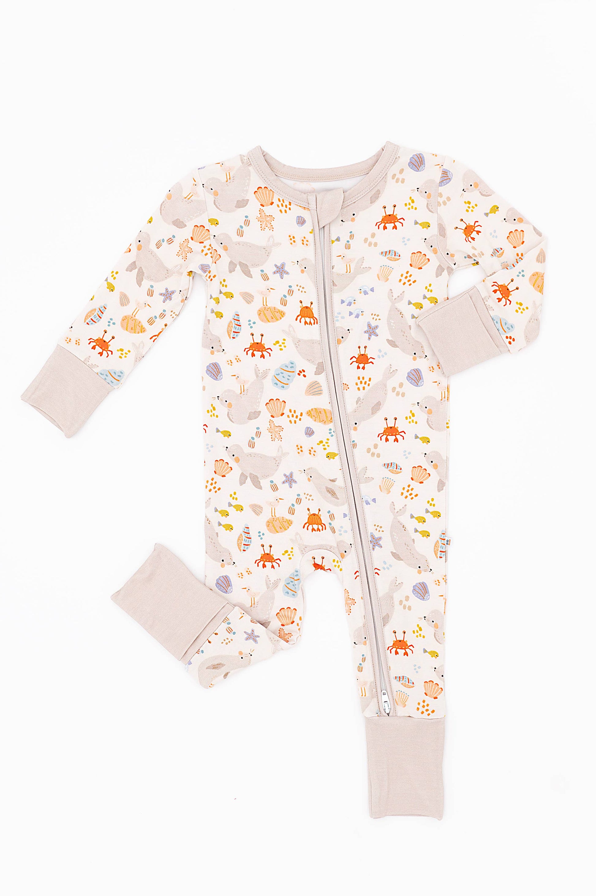 Inspired by days at the beach, our Sammie the Seal print brings the calm of the sea and the playfulness of seals to life in soothing neutral tones. Made from our signature bamboo fabric, this convertible zip romper is ultra-soft, breathable, and perfect for little ones on the move. With fold-over cuffs at the hands and feet, it easily converts from romper to footie — perfect for day-to-night wear.