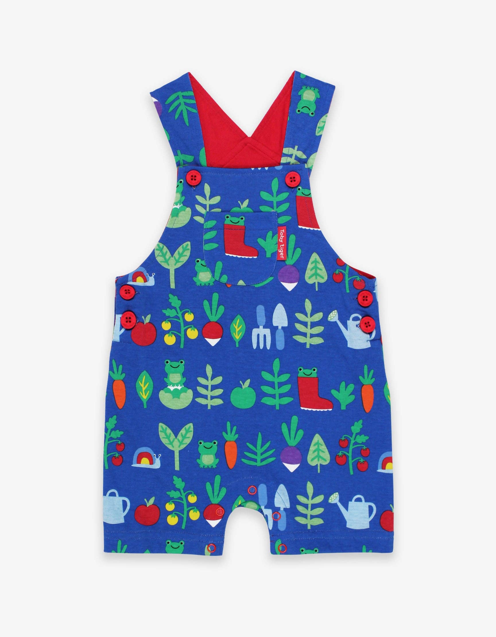 Join us at the veggie patch and look the part with these versatile organic dungaree shorts. Made from super soft organic cotton, they're essential for keeping cool in the sunshine, while adjustable shoulder straps and leg snap fastenings on smaller sizes make for easy peasy changing. Add one of our bright organic basic T-shirts for a color pop this spring and summer.
