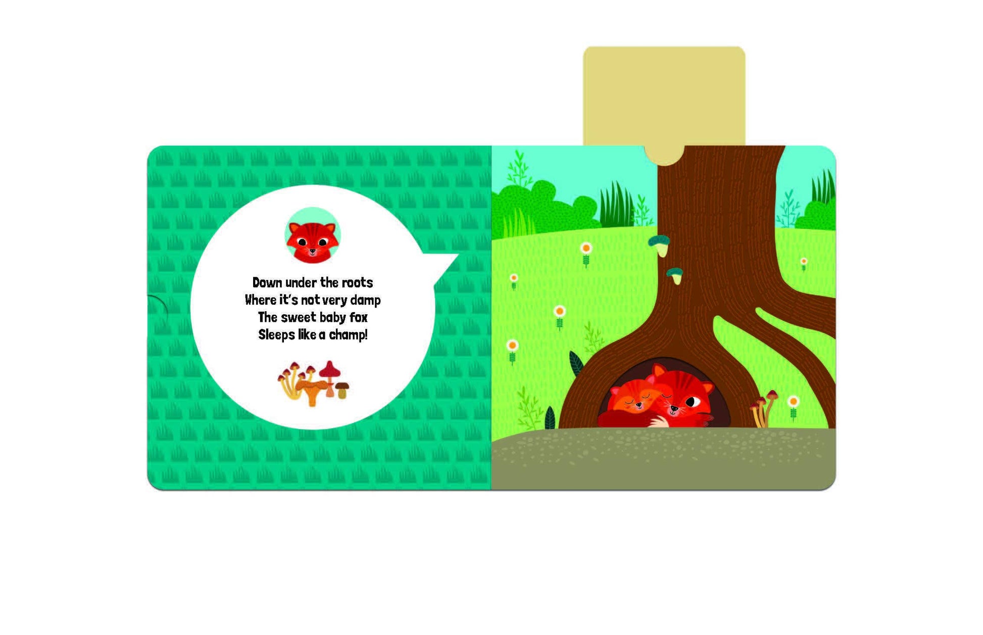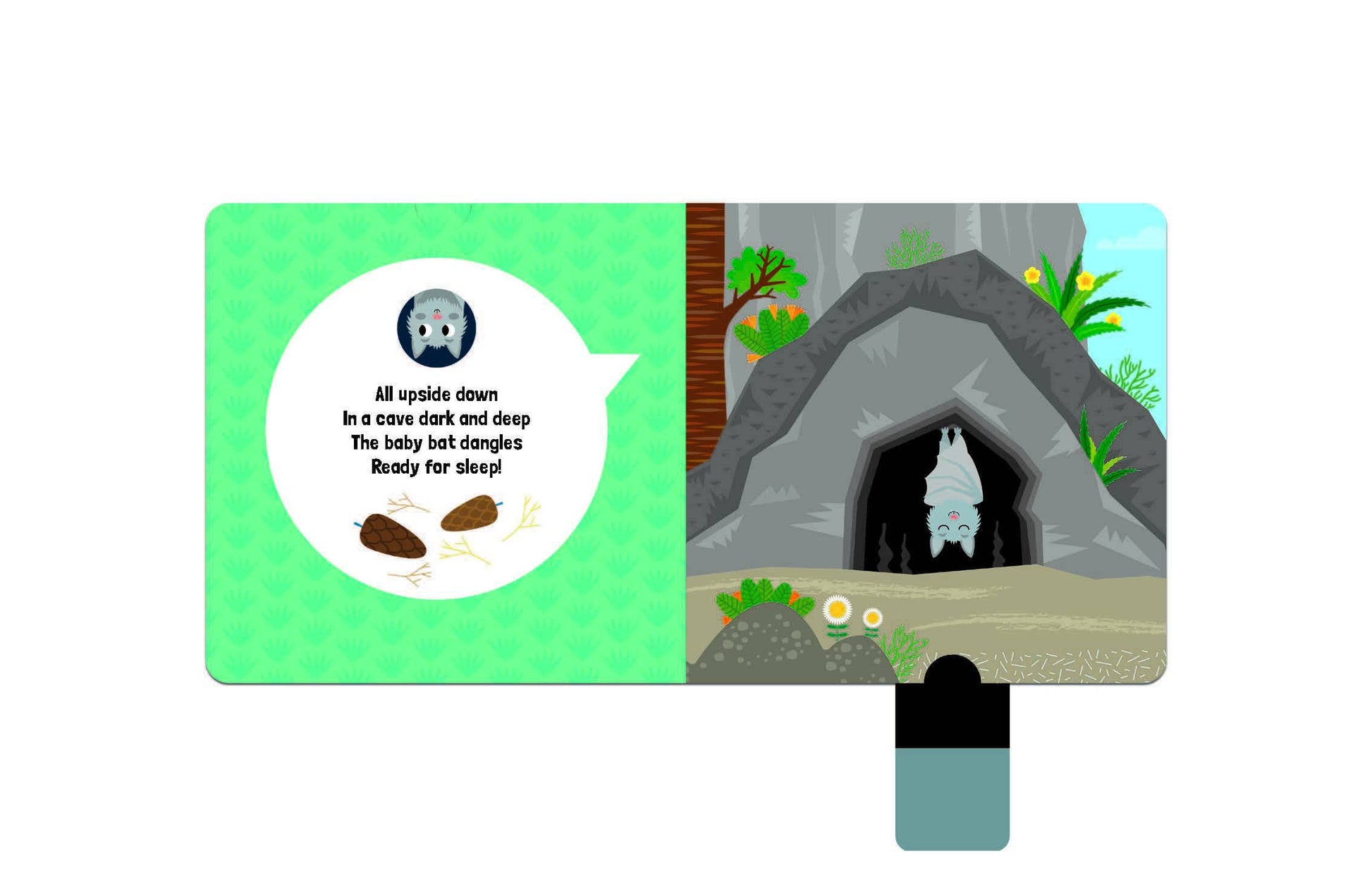 Toddlers can reveal each baby animal from its sleeping place with the pull of a tab for an engaging experience they can enjoy for many bedtimes to come.