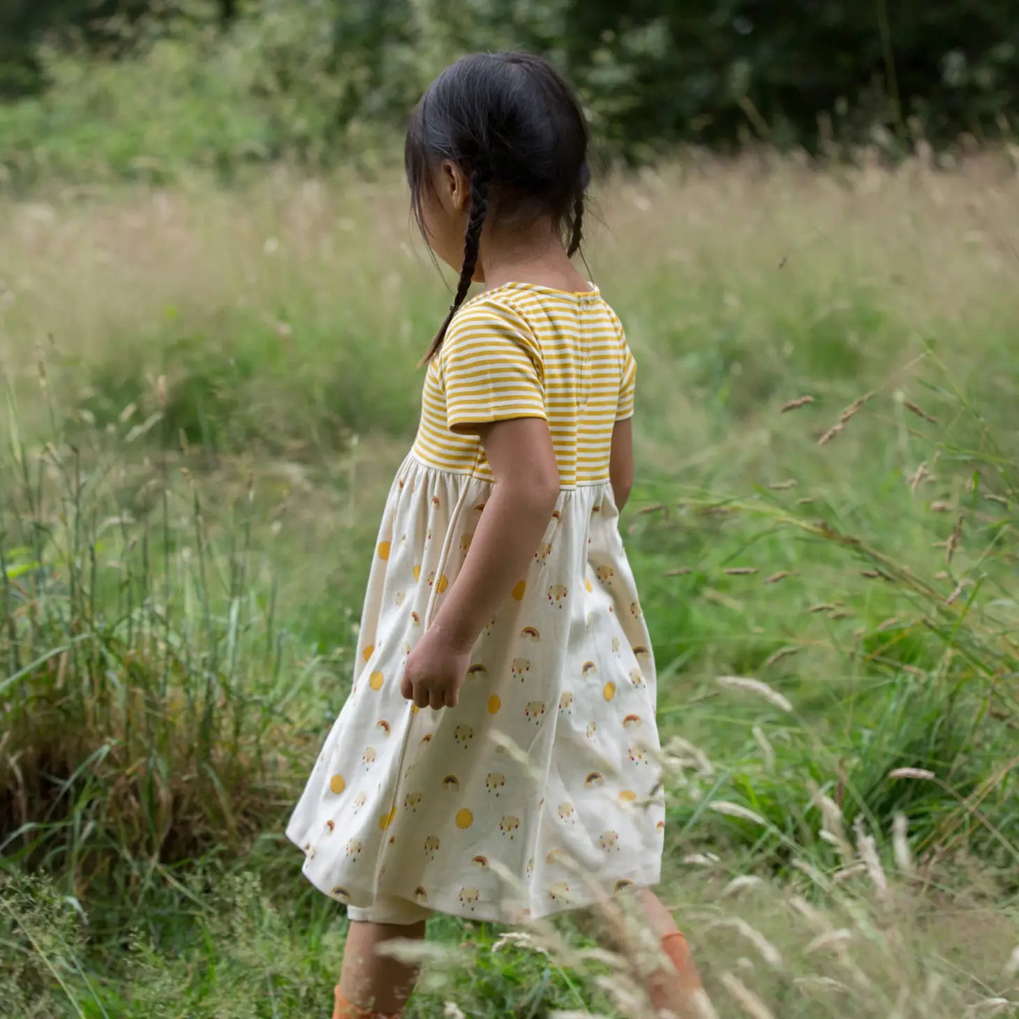 This dress is easy peasy to put on and so comfy, your little one will want to wear it everyday! It's made using long-lasting organic interlock cotton which is lovely and thick, and very soft to touch. It sits just above the knee and has a wide skirt to give lots of room for movement as they play, and a fitted top with short sleeves to protect from the sun.