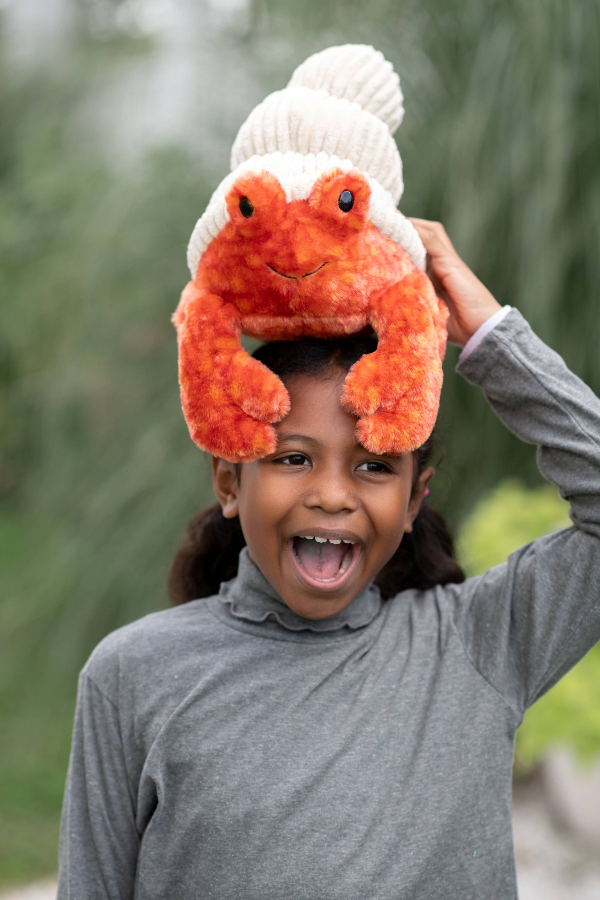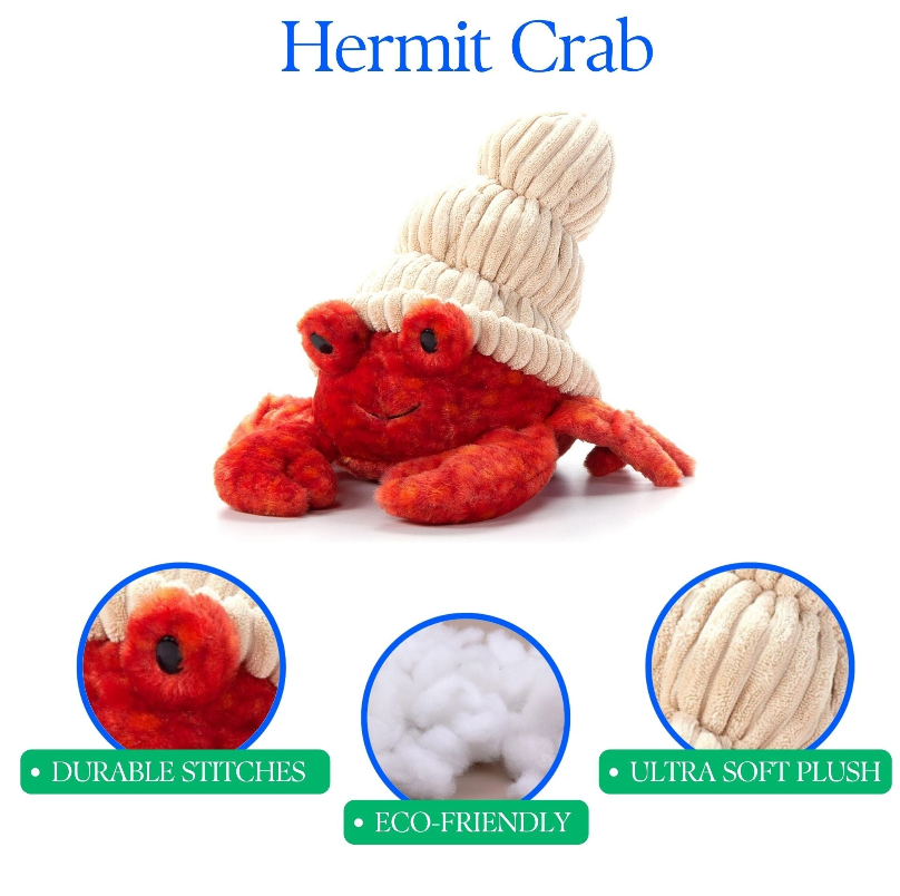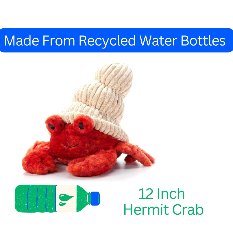 Crawl into all day play with this cute plushie hermit crab as the newest addition to your toddler toy collection. These soft plushies are made from high-quality recycled materials and designed to endure all-day play. With this easy-to-transport plush hermit crab stuffed animal in tow, fun follows you everywhere.