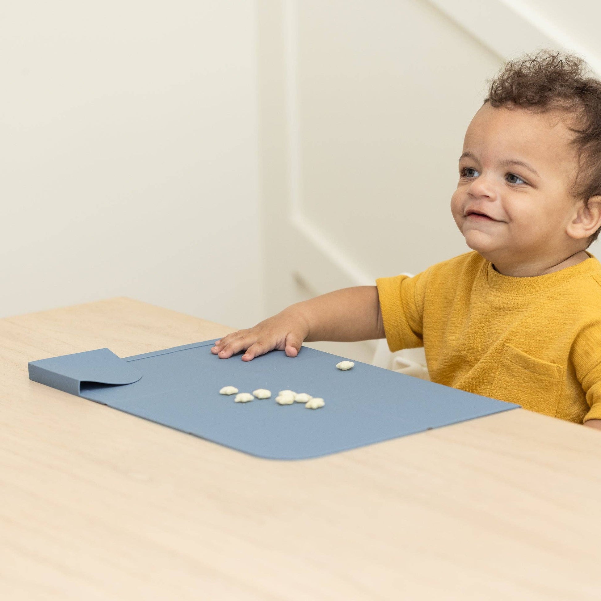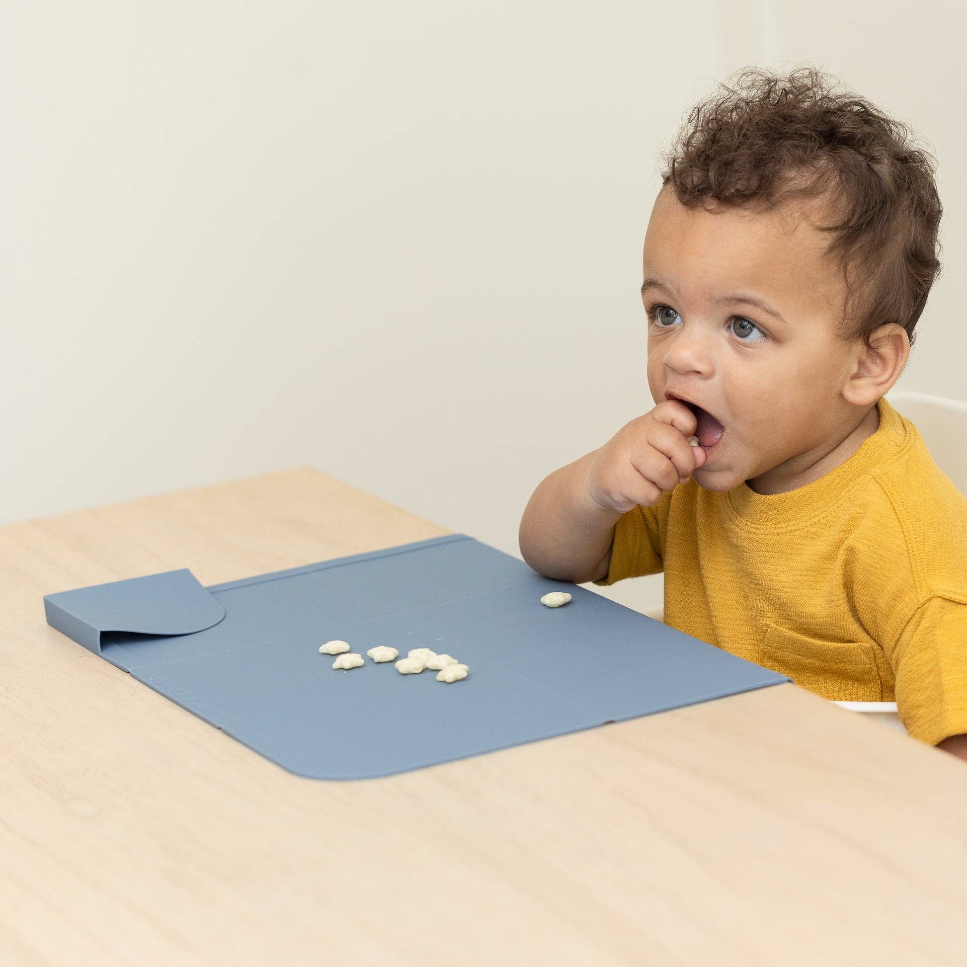 Introducing the first-of-its-kind foldable placemat with Table Guard technology. With a 2” flap to cover the front of the eating surface, this generously sized placemat keeps the entire eating area both clean and protected. Our nonslip silicone placemat was designed for on-the-go and at home. The compact and portable design is perfect for traveling, restaurants, or visiting friends and family.. Offered in our 10 signature colors that coordinate perfectly with our entire feeding collection.