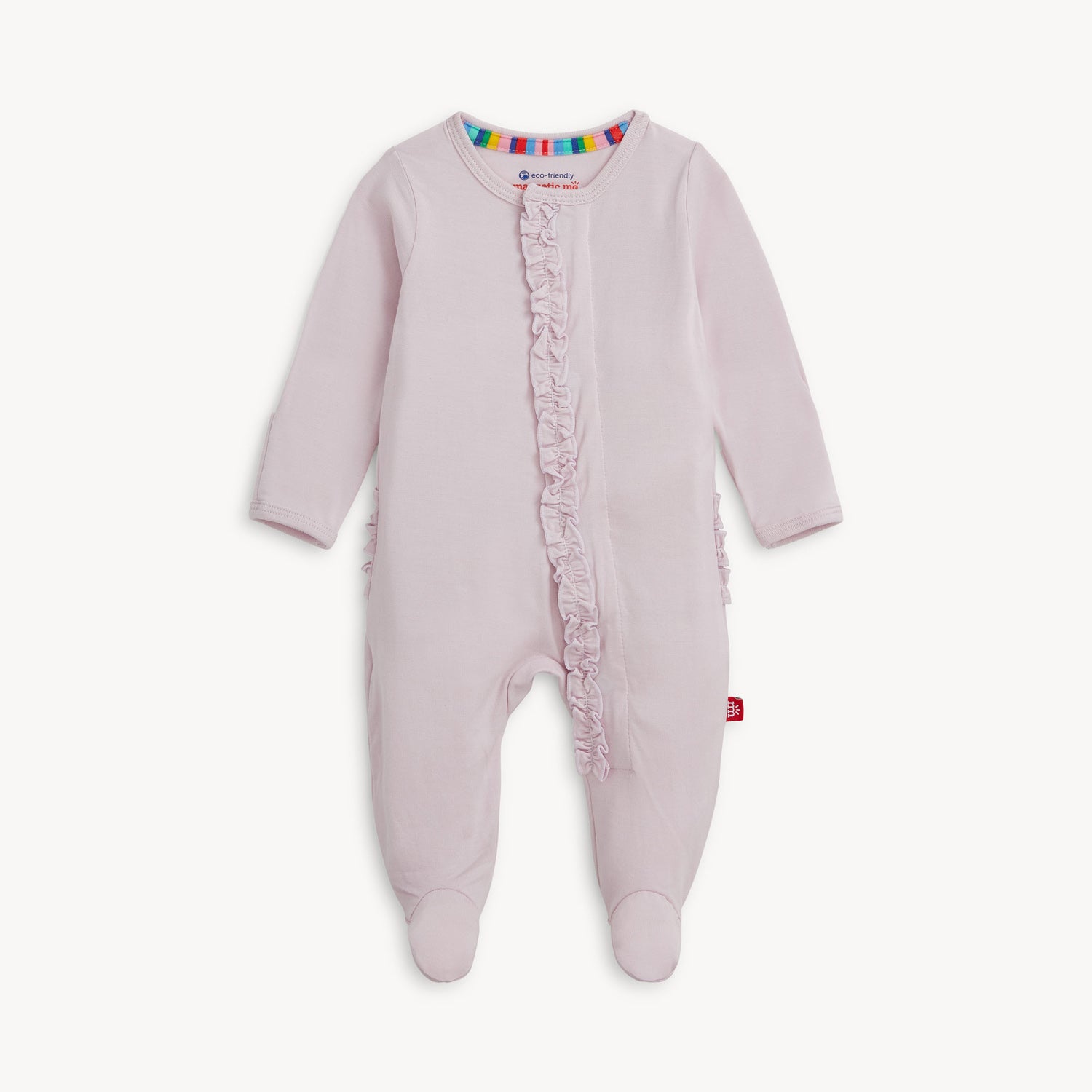 our parent favorite footie is an everyday (and night) essential with magnetic closures that make dressing easy. magnets are quick, quiet, and a lifesaver for middle-of-the-night changes. eco-friendly TENCEL™ modal is silky soft, breathable, and gentle on sensitive skin. temperature-regulating properties will keep warm in winter, you cool in summer, and oh-so comfortable year round.