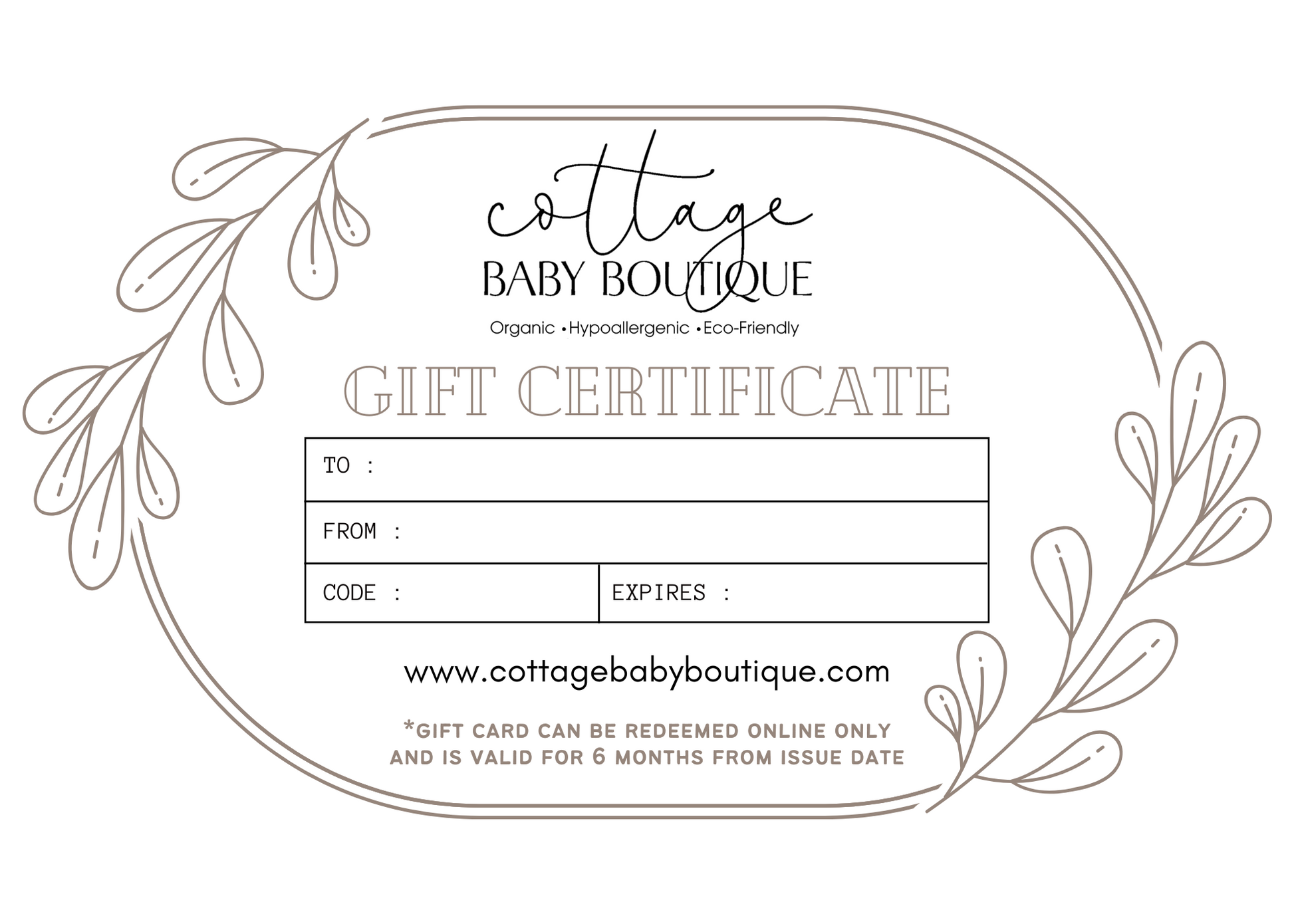 Shopping for someone else but not sure what to give them? Give them the gift of choice with a Cottage Baby Boutique gift certificate.