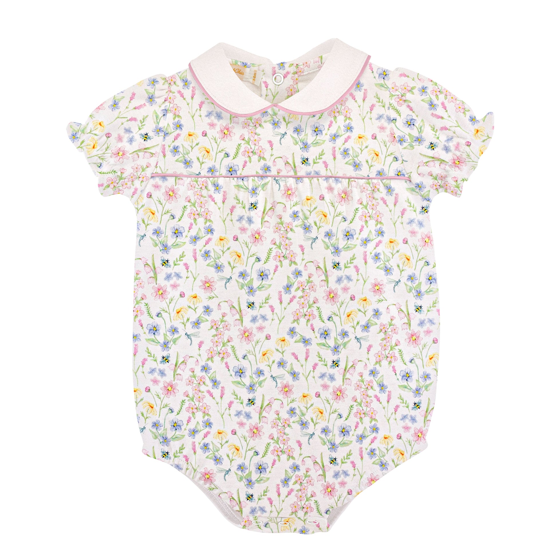 Dress your little one in timeless elegance with the Spring Blush Pima Bubble. This charming short-sleeve design features a delicate spring pattern that captures the season's gentle beauty, paired with a crisp white round collar trimmed in soft pink. Crafted from 100% pima cotton, it's incredibly gentle on delicate skin and breathable for all-day comfort. Convenient snap closures at the bottom and back make diaper changes effortless, so you spend less time fussing and more time enjoying precious moments. Perfect for spring outings and special occasions alike.